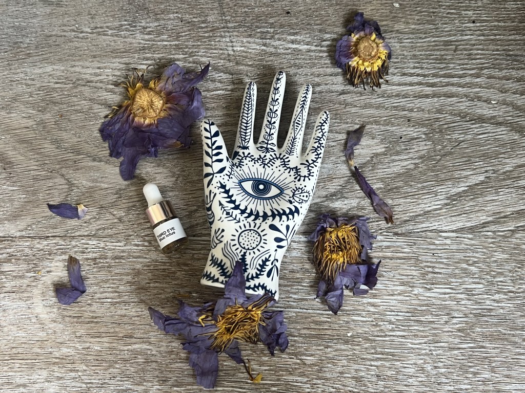 The presence of the blue lotus flower in this concoction, helps to open your third eye, to connect with the spiritual realm.